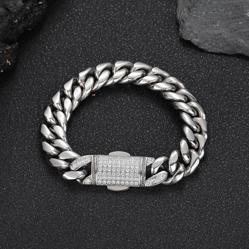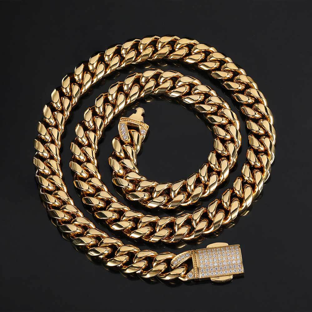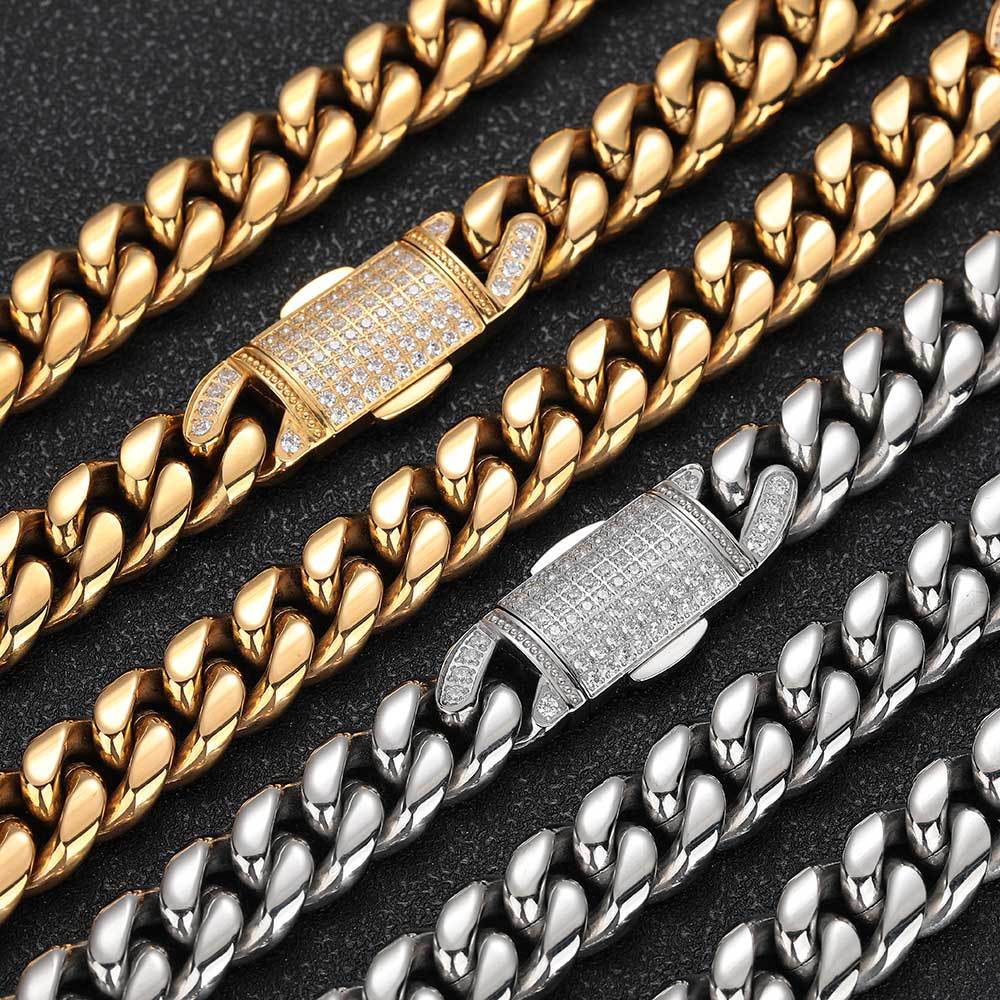 Laotlon Hip-Hop 12mm Artificial Mini Gemstone Spring Snap Stainless Steel Cuban Chain