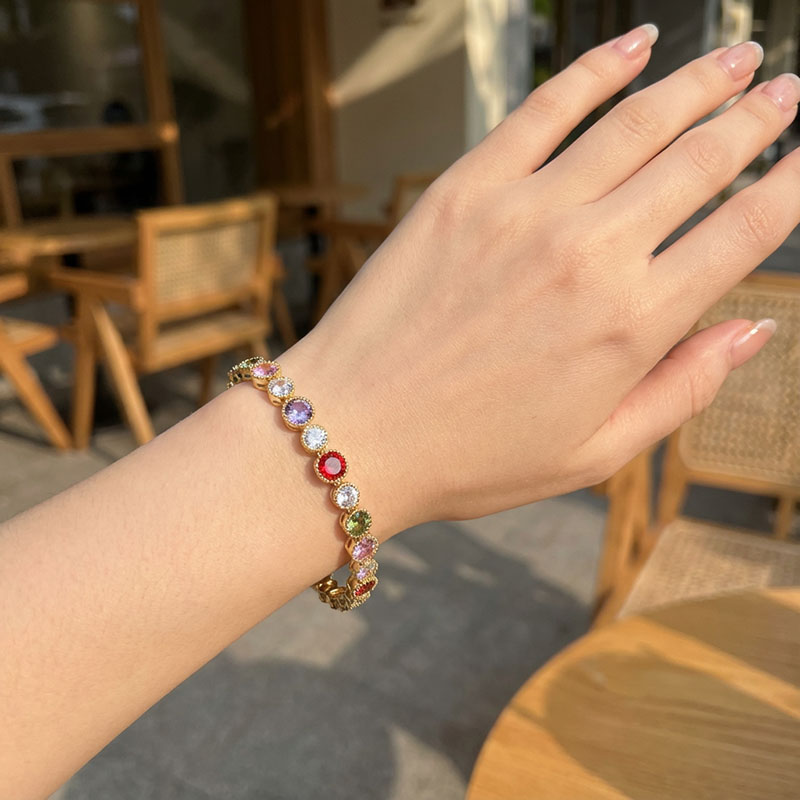 TAOLON 18K Gold-Plated Colorful Fashion Round Zircon Bracelet
