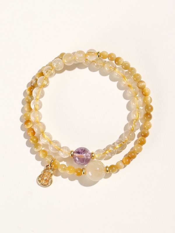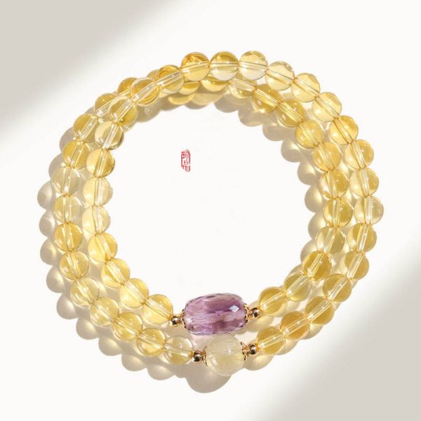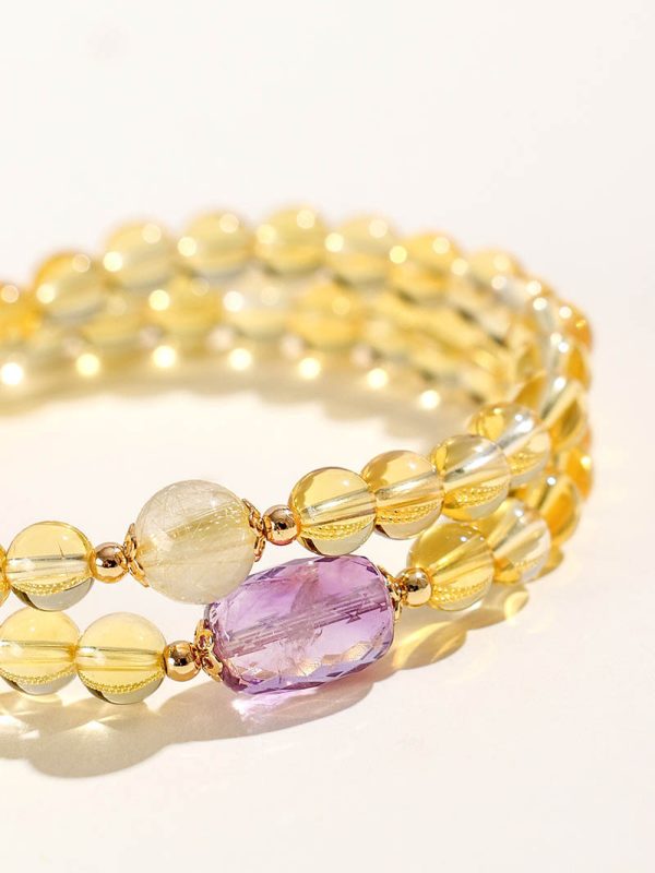 - Materials: Golden Rutilated Quartz, Golden Tiger’s Eye, Amethyst