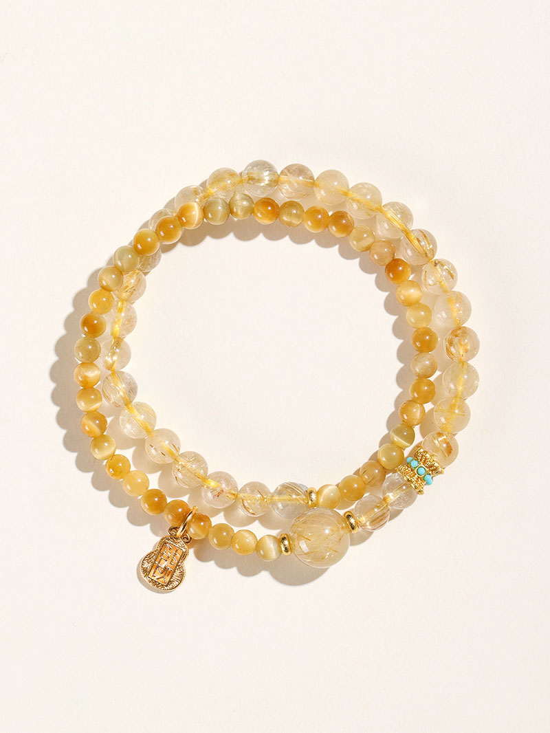 At the heart of this bracelet are breathtaking Golden Rutilated Quartz beads, each containing sun-captured filaments of golden rutile. Known as the “Illuminator,” this high-frequency crystal is a powerful amplifier of energy and intentions. It is believed to attract wealth, magnify opportunities, and provide mental clarity to help you achieve your most ambitious goals with speed and precision. - 🐅 Golden Tiger’s Eye – The Stone of Courage & Focus: