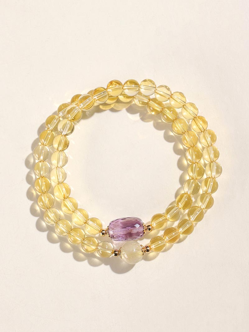 - Materials: Golden Rutilated Quartz, Golden Tiger’s Eye, Amethyst