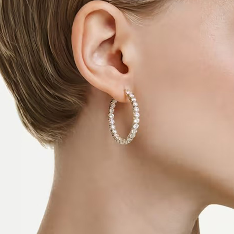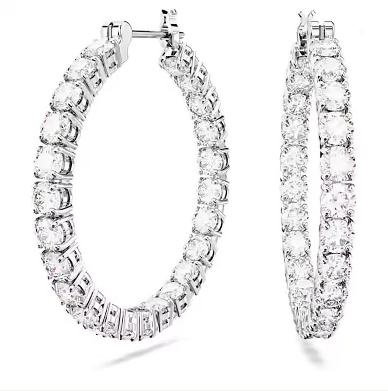 Make a dazzling statement with our Intricate Diamond Hoops. Expertly crafted, these captivating earrings feature a detailed array of shimmering stones that create an aura of sophisticated charm. Their versatile design seamlessly transitions from a powerful day look in the boardroom to an elegant evening out. Let these hoops be your go-to accessory for an instant infusion of confidence and style.