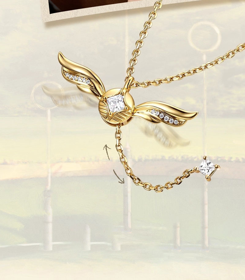 • Design Variations: Choose from three enchanting styles – the classic winged orb with a radiant square-cut crystal center, the floral-winged pendant featuring a blooming crystal accent, or the sleek dangling sphere with a sparkling solitaire crystal. Each design evokes the swift, elusive charm of the Snitch while adding a romantic flair.