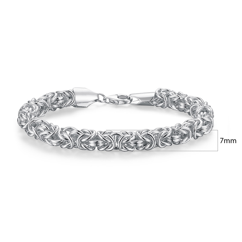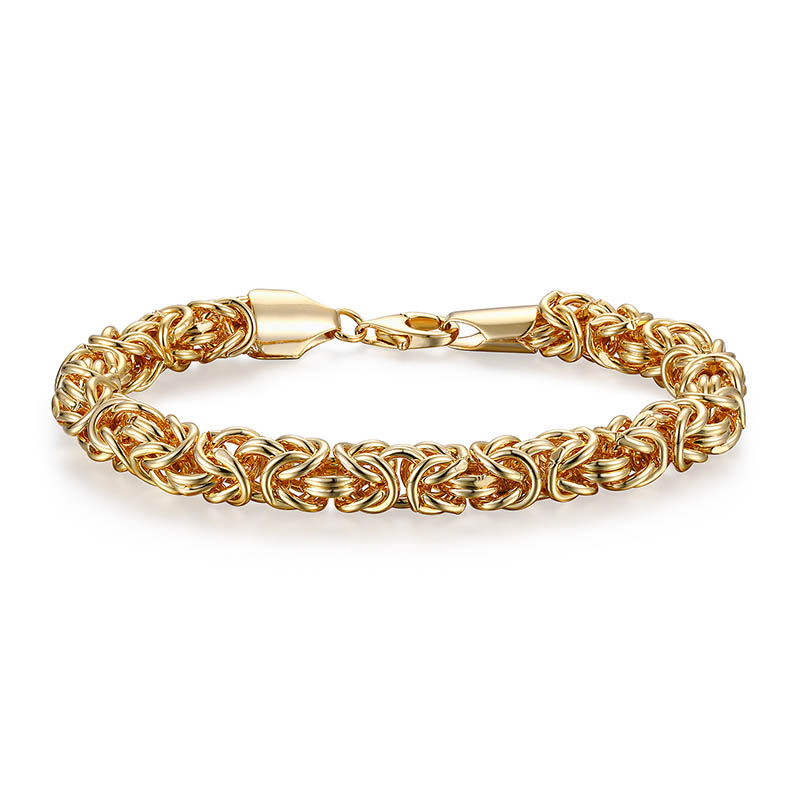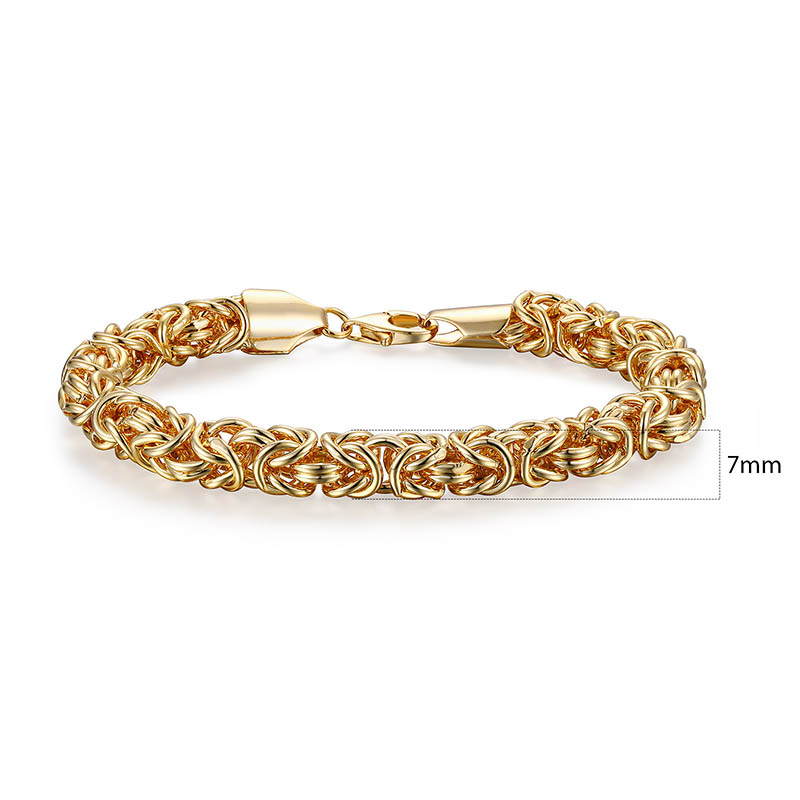 This bold 7mm braided chain bracelet is meticulously hand-woven link by link, creating a rich, textured rope-like design that catches the light beautifully from every angle. Crafted from a solid copper core and luxuriously plated in thick 18K gold (or premium white gold), it delivers the rich color and shine of real gold jewelry at an accessible price.