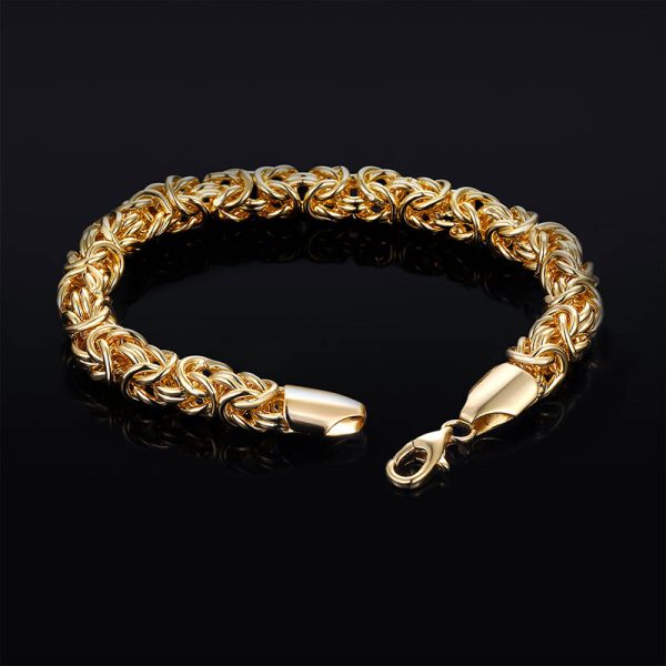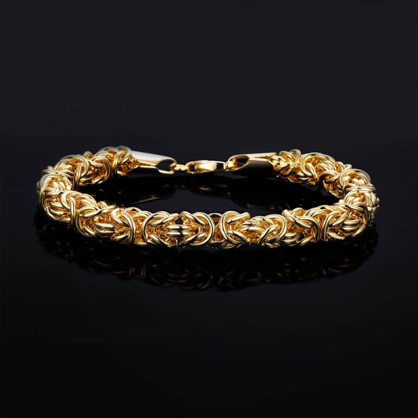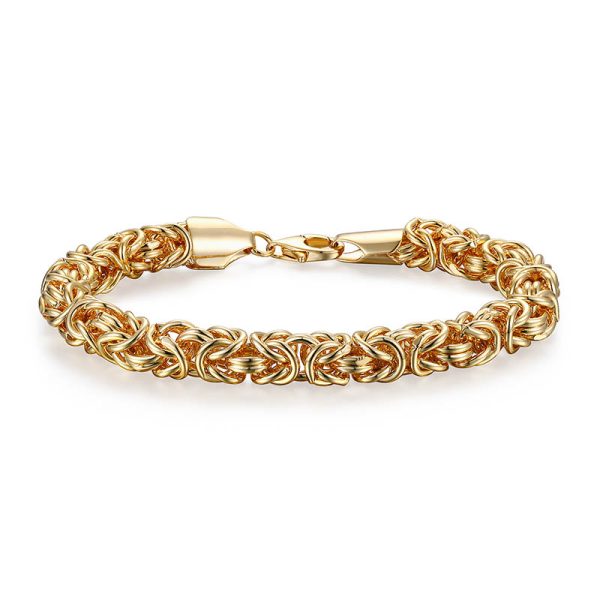 TAOLON Handcrafted 7mm Vintage Braided Chain Bracelet – 18K Gold Plated Lobster Clasp