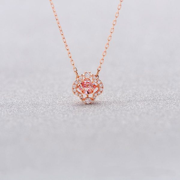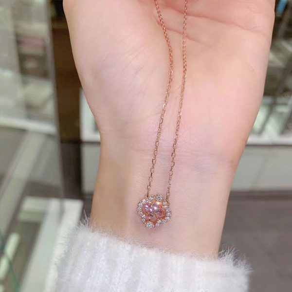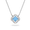 At the heart of the pendant, a brilliantly cut, colorful crystal captures the light with every movement, creating an eye-catching sparkle. This vibrant centerpiece is framed by a glittering halo of smaller pavé crystals, enhancing its beauty and adding a layer of sophisticated shimmer. Set on a delicate, adjustable chain, this necklace offers a graceful and comfortable fit.