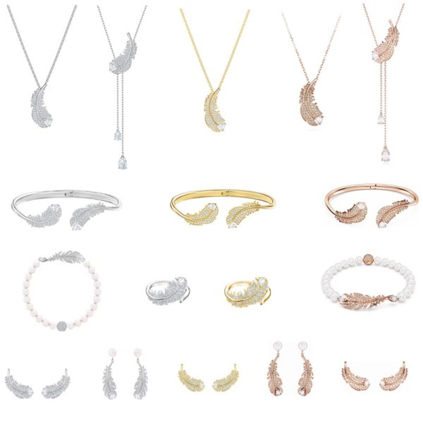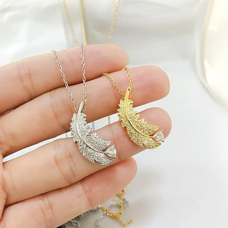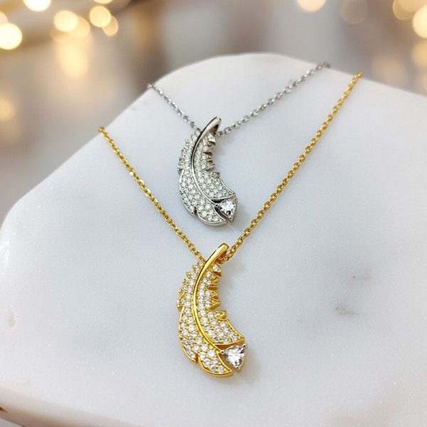 - Necklaces — Graceful pendant designs that delicately rest against the collarbone, elongating the neckline with fluid, feather-like curves.