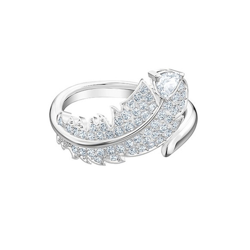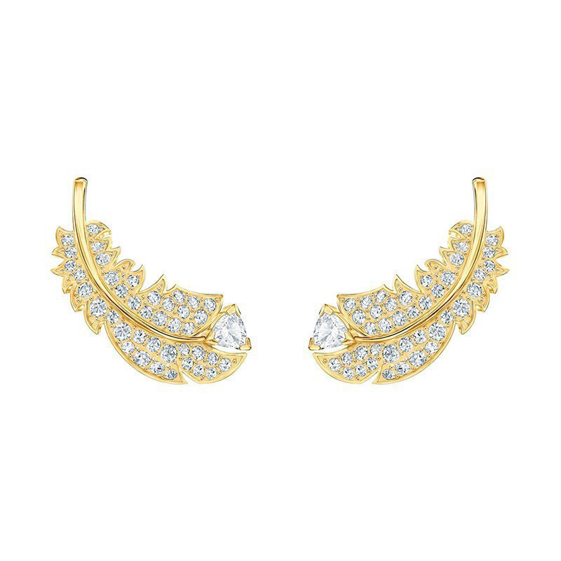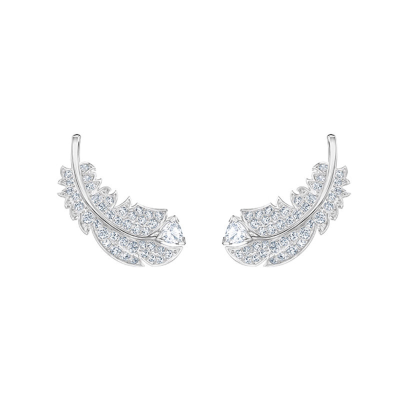 Crafted with meticulous attention to detail, the collection features dazzling pavé-set stones that mimic the intricate texture of real feathers, paired with a central gemstone accent for added brilliance and depth. Available in three versatile precious metal tones to complement any skin tone and wardrobe: