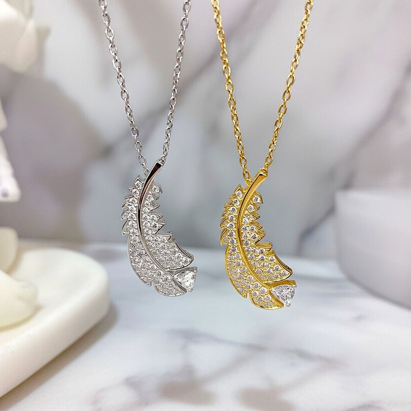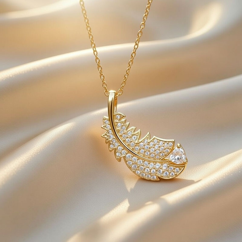 - Necklaces — Graceful pendant designs that delicately rest against the collarbone, elongating the neckline with fluid, feather-like curves.