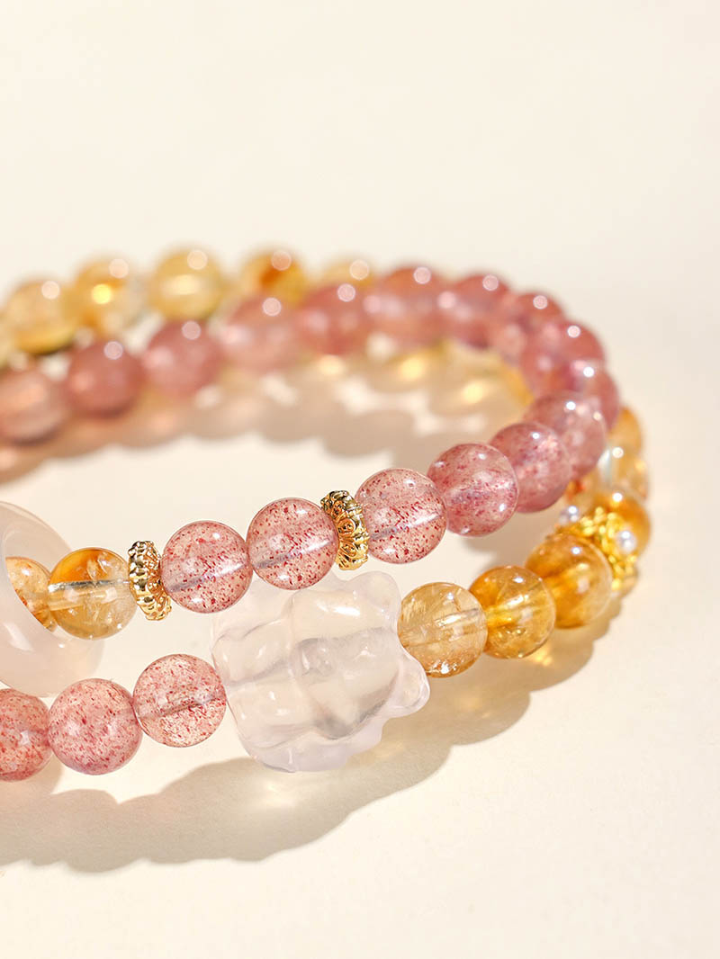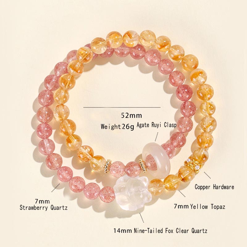 - Material: Strawberry Quartz, Yellow Citrine, Clear Quartz Nine-Tailed Fox