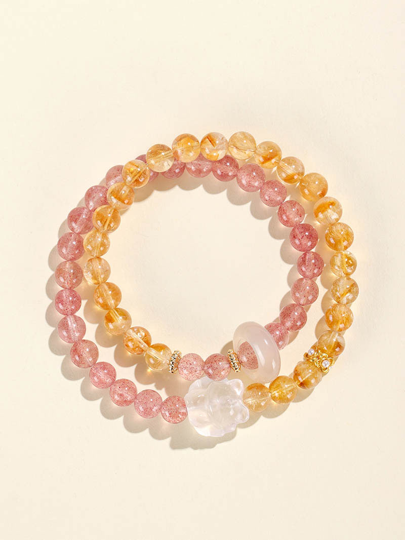 Experience the gentle, nurturing energy of authentic Strawberry Quartz. These beautiful pink beads, with their unique sparkling inclusions, are believed to attract love, foster self-love, and create a bubble of joy around the wearer. - ☀️ Natural Citrine – The Stone of Abundance:
