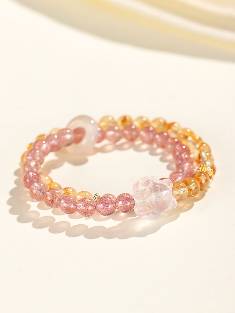 - Bead Style:Clear Quartz Nine-Tailed Fox Bracelet, Clear Quartz Nine-Tailed Fox Double-Circle Bracelet