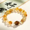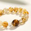 The stunning centerpiece is a genuine Citrine crystal, expertly carved into a unique “pagoda tower” shape. Known as the “Success Stone,” Citrine is a radiant beacon of joy, wealth, and positive energy. This special cut is believed to focus and channel your intentions, acting as a powerful magnet for opportunities and abundance. - ✨ Golden Rutilated Quartz – The Illuminator: