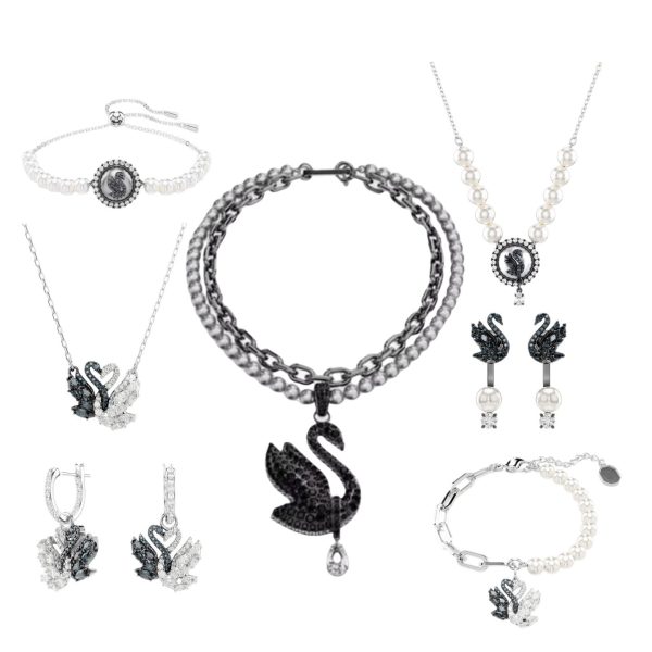 - The “Eternal Embrace” Set: Featuring the interlocking black and white crystal swans, the delicate pendant necklace and matching drop earrings are perfect for adding a touch of romance to any look.