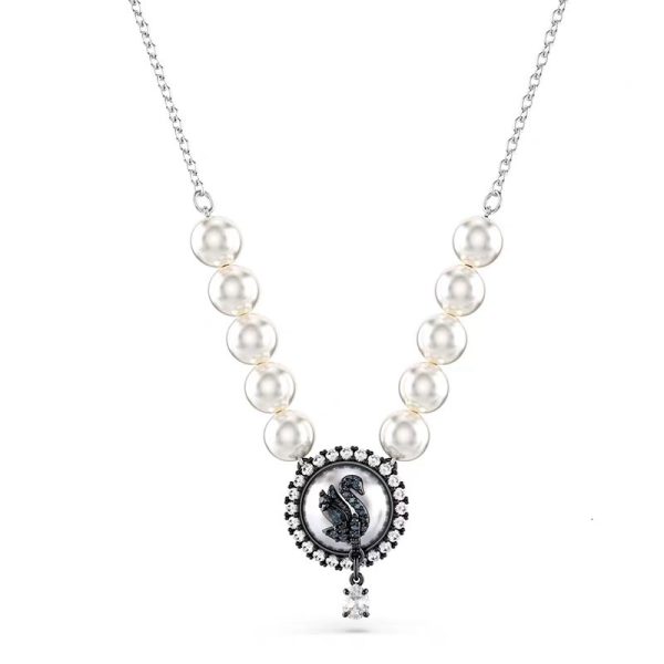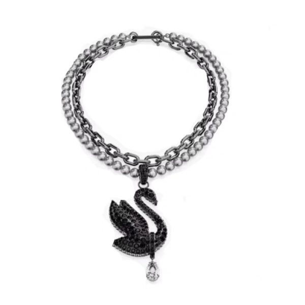 - The “Midnight Swan” Series: For a bolder statement, the enigmatic black pavé crystal swan is the star. Featured on a chunky dual-chain bracelet and a classic pearl necklace, these pieces exude confidence and mystery.