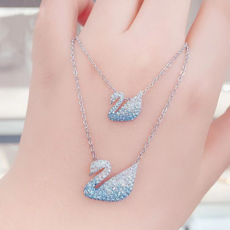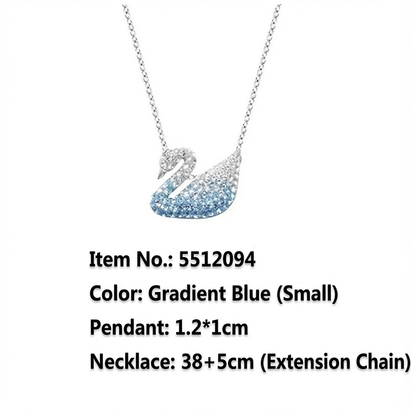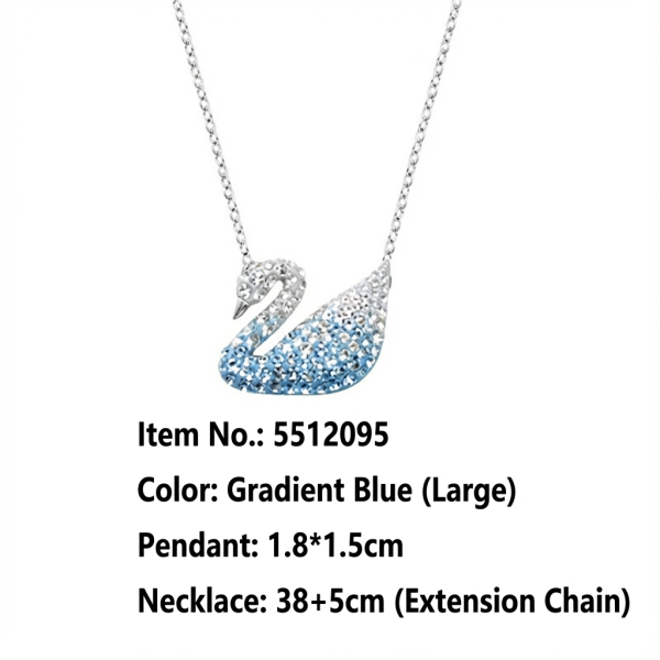 The legendary swan pendant, known for its symbolism of love and transformation, is meticulously encrusted with brilliant pavé crystals. In our exclusive gradient collection, these crystals transition through stunning ombré palettes—from deep midnight tones to fiery sunset hues and serene ocean blues. Each crystal is expertly set to create a seamless flow of color that is simply mesmerizing.