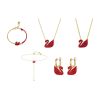 Bathed in a rich, luminous gold plating, the collection radiates a warm, ethereal glow that accentuates every curve and facet. The sublime contrast between the deep scarlet and the gleaming gold creates a harmony of drama and sophistication, ensuring a presence that is both felt and remembered.