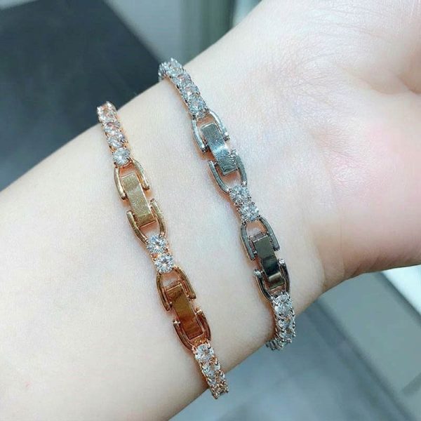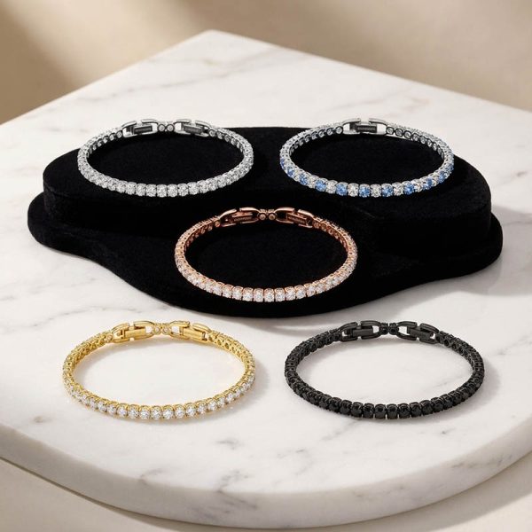 Crafted with a polished, high-quality plated finish, this bracelet offers both luxury and durability. Its slender, graceful design makes it a versatile accessory, perfect for adding a touch of glamour to your everyday look or as a stunning complement to an evening gown. The secure foldover clasp ensures a comfortable and confident fit.