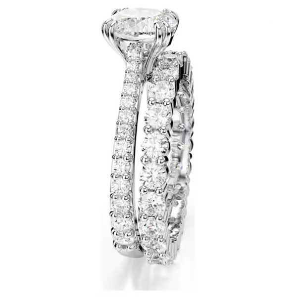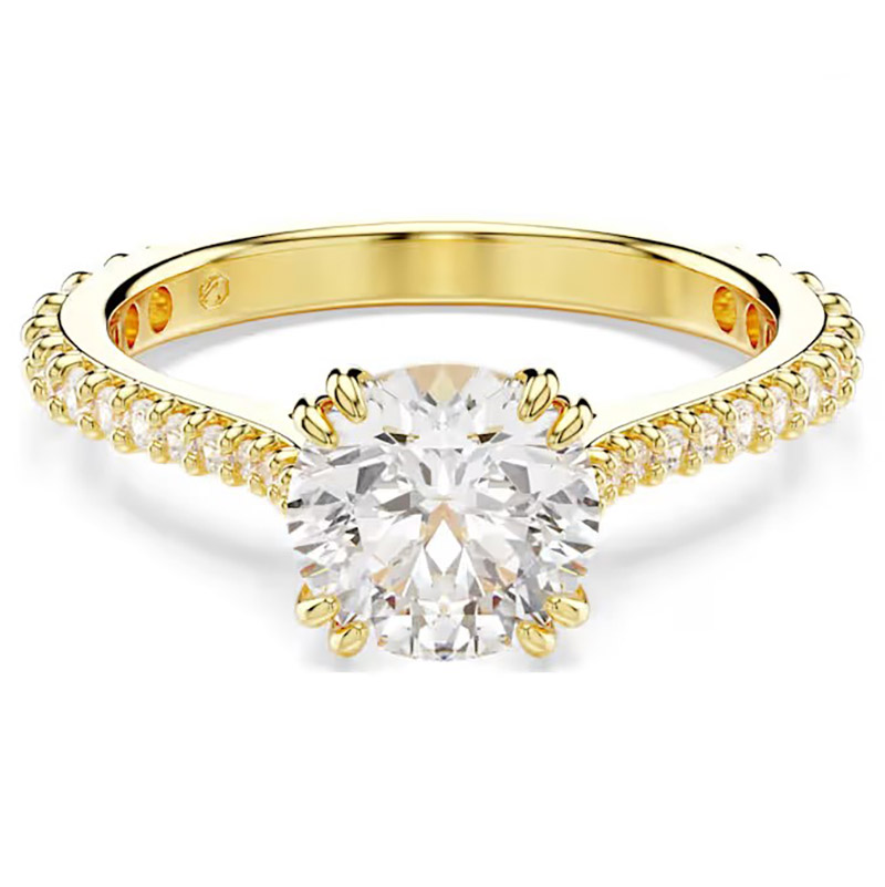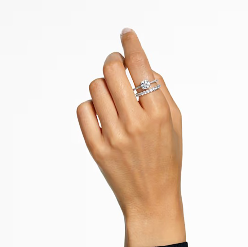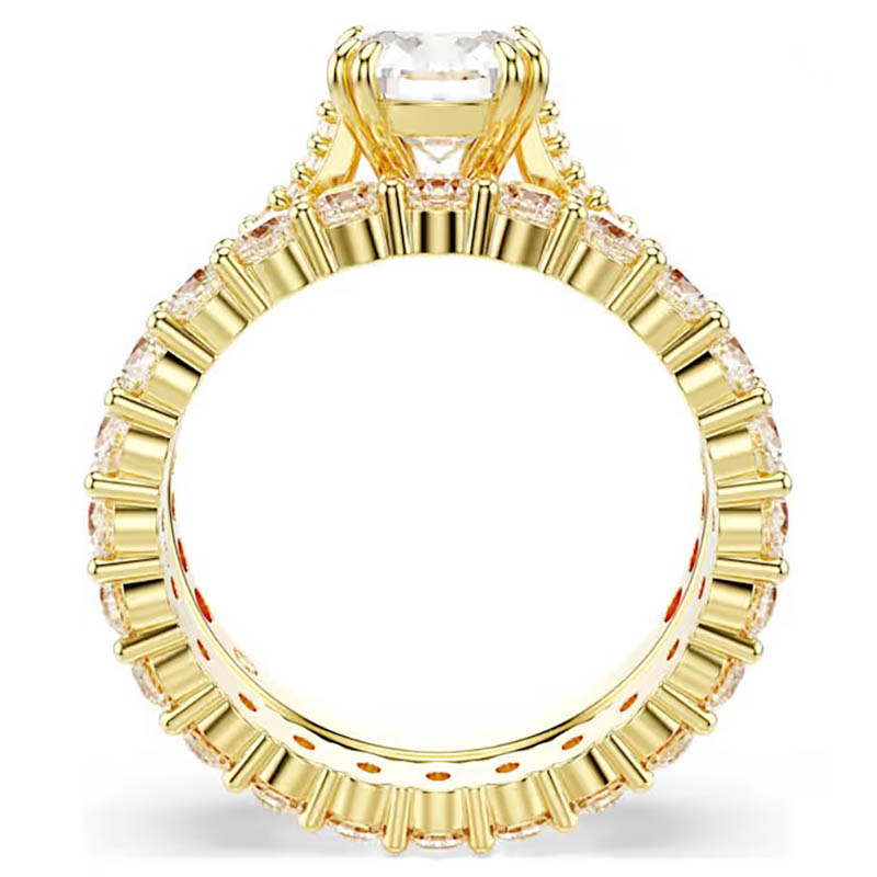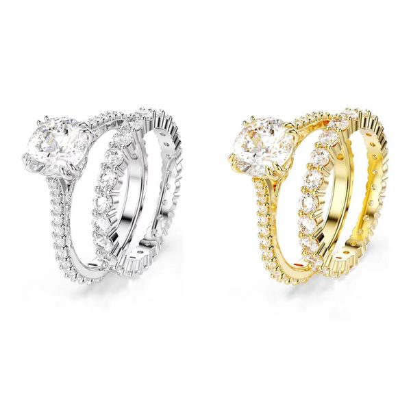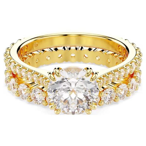 Gold-Tone Collection This exquisitely crafted jewelry captures the beauty of the boundless cosmos, immersing you in a dazzling galaxy of light. The gold-tone design combines a pavé-set band ring with a single-stone ring, both featuring a large Swarovski cubic zirconia at the center. A dazzlingly unique gift, it vividly showcases perfect luxury craftsmanship.