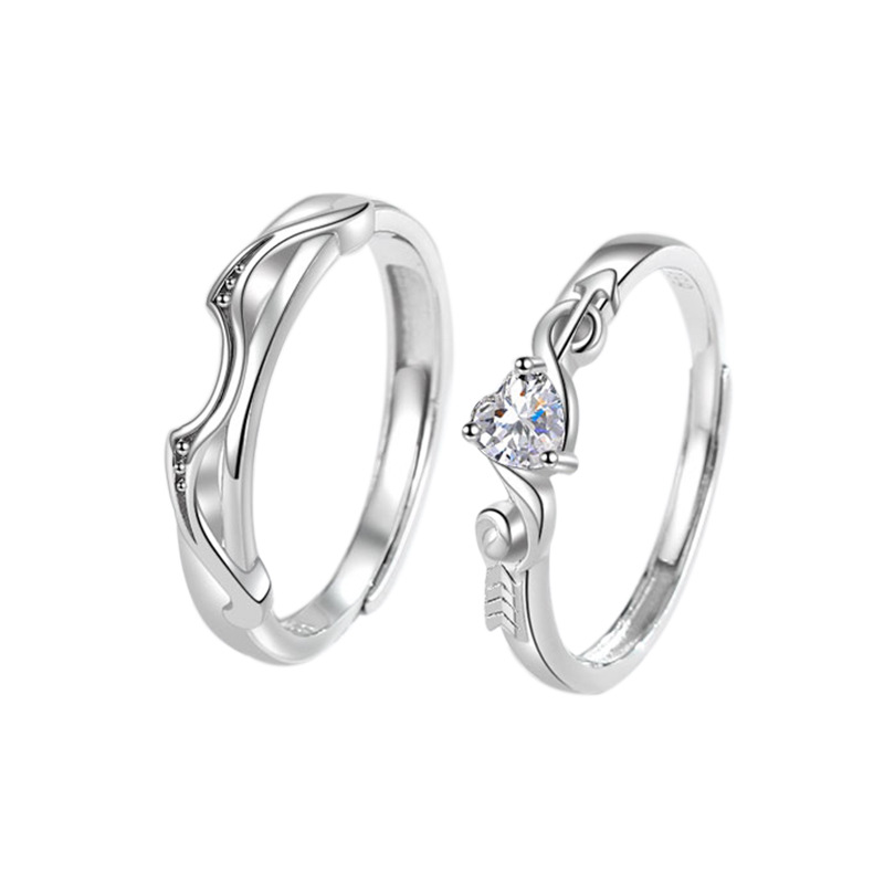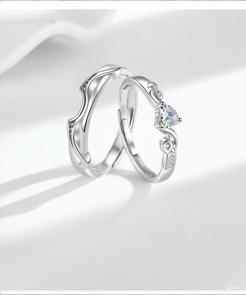 For her, the ring features a heart-shaped zircon at its center, representing the target of Cupid’s arrow—an emblem of a heart captured by love. The arrow detail wraps around delicately, symbolizing the unbreakable bond that love forges.