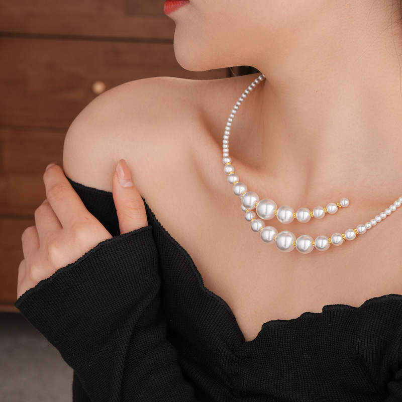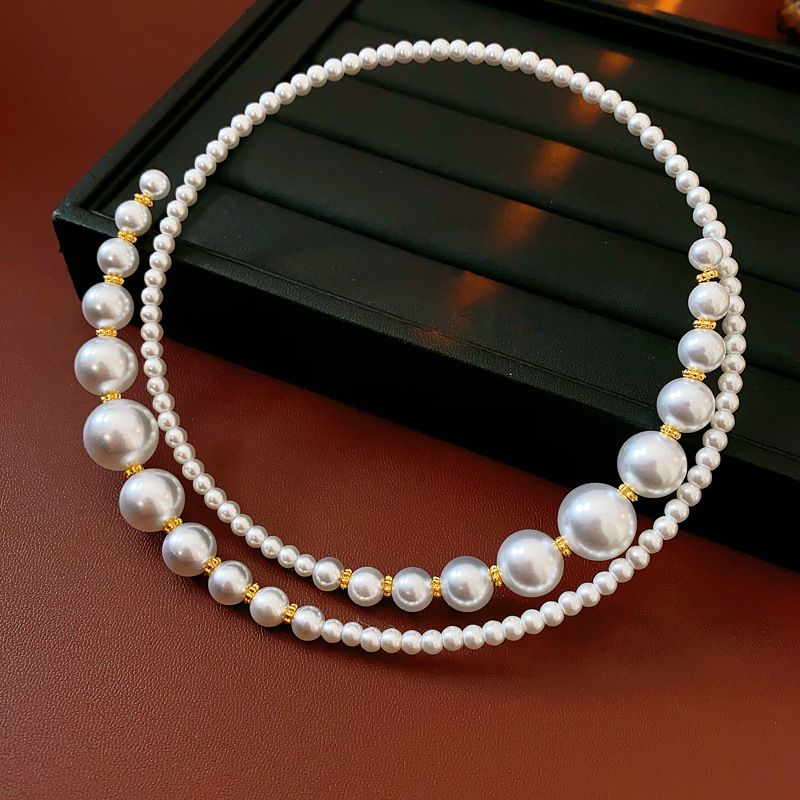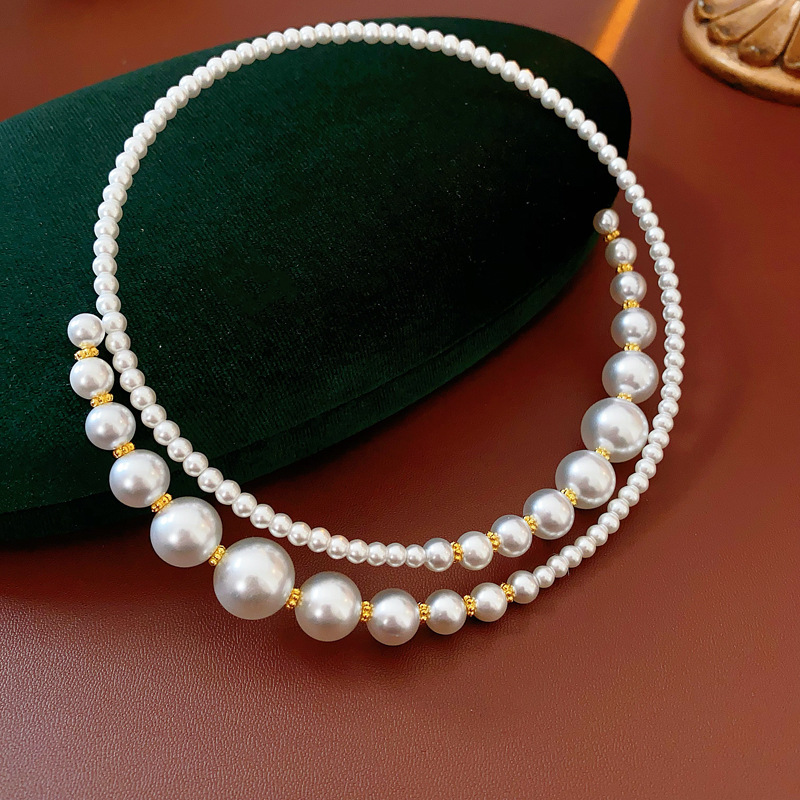 TAOTLON French retro light luxury necklace pearls necklace