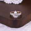 The Pear Mossanite Ring is an exquisite choice for those seeking a unique and elegant engagement ring. Therefore, showing a gorgeous pear-shaped moissanite ring it combines modern design with classic charm. While the marquise form outline gives a unique touch to the whole design, the V prong setting sharpens the brilliance of the moissanites. These moissanites were tightly held by those claw prong engagement ring, guaranteeing durability.