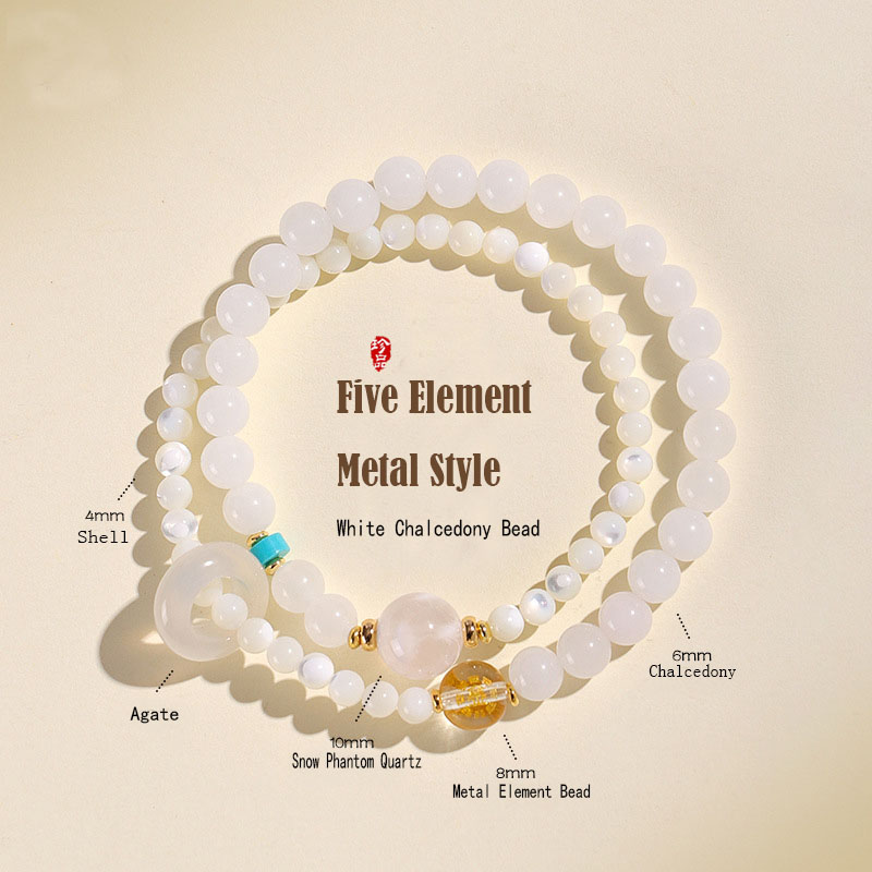| Metal (金) | Strength & Clarity | White Chalcedony, Snow Phantom Quartz | Promote focus, integrity, and resilience in the face of challenges. |