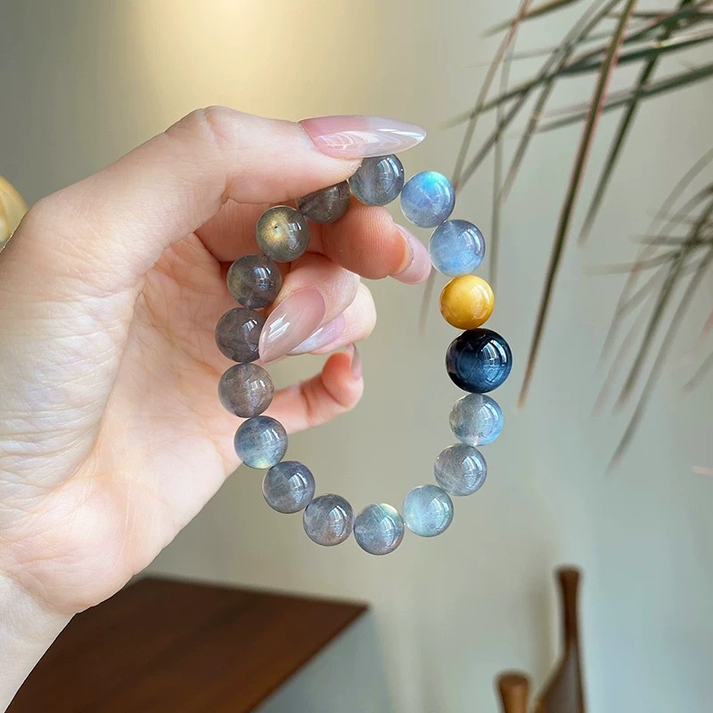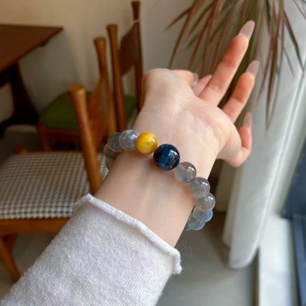 TAOTLON Natural Gray Moonstone & Blue Gold Tiger’s Eye Bracelet