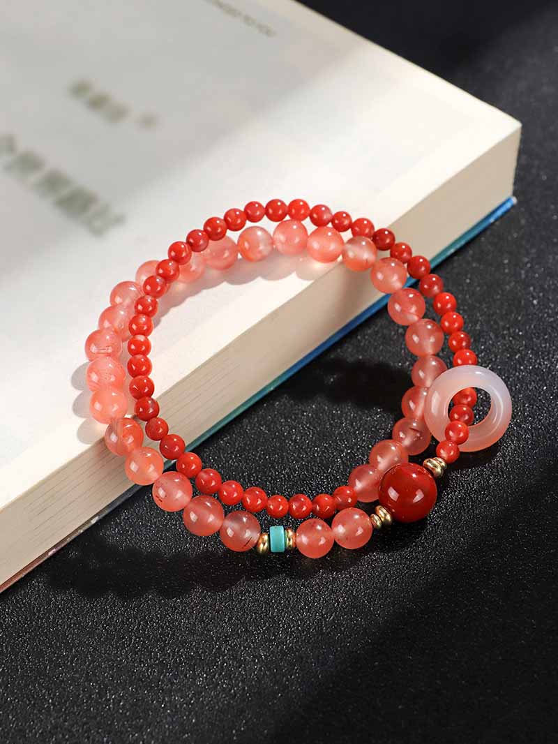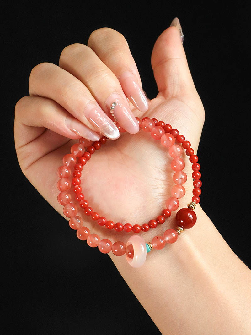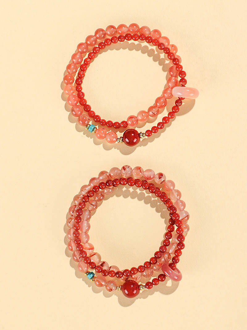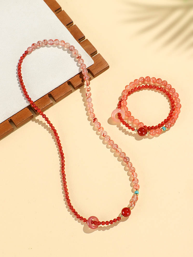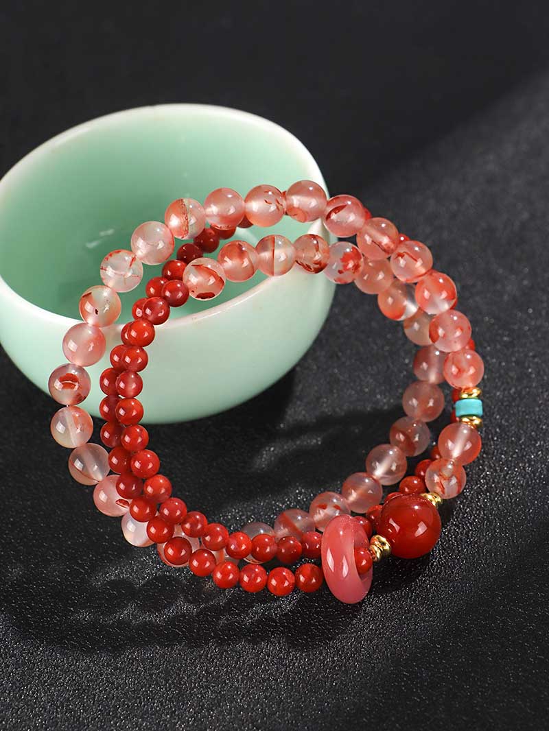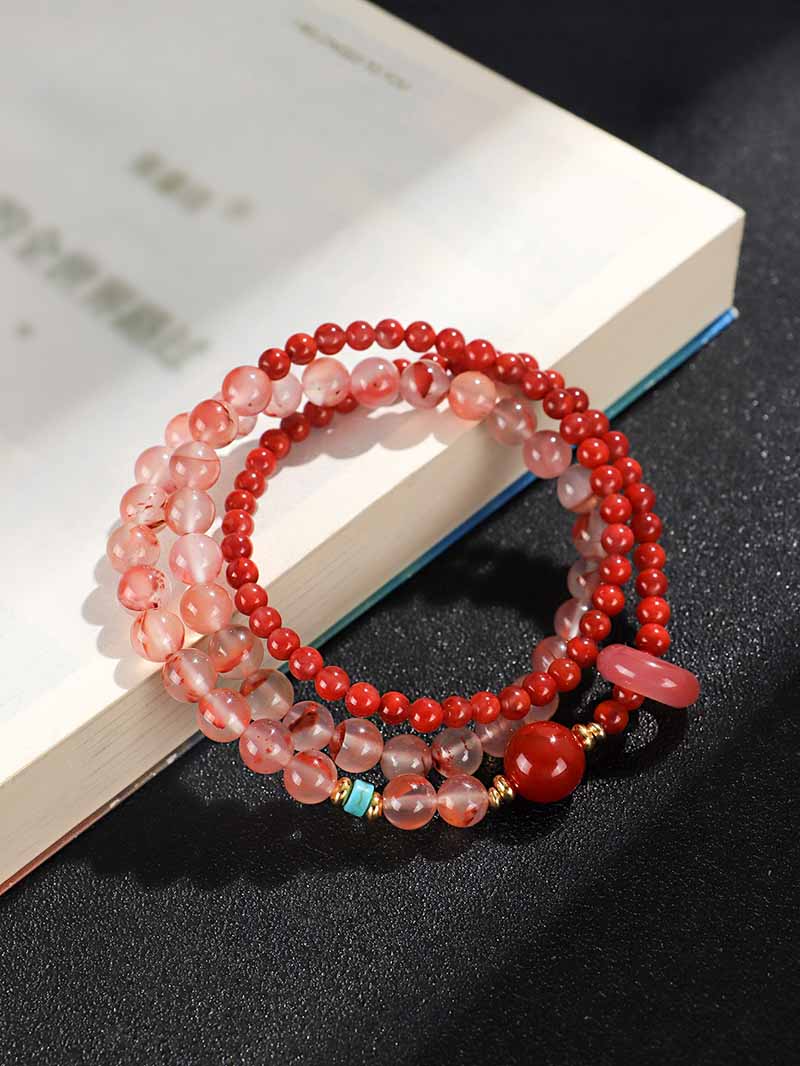 Symbolism of Joy & Abundance: Red Agate is traditionally believed to bring vitality, prosperity, and protection, while the softer pink stones represent peace, harmony, and emotional balance.