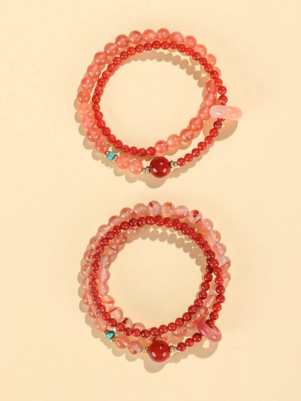 TAOTLON New Chinese Style Ice-Floating South Red Bead Bracelet