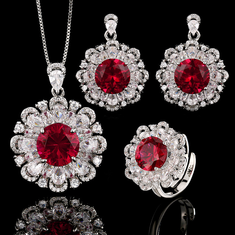 TAOTLON Exquisite Red Corundum Jewelry Set: Necklace, Ring and Earrings with Sparkling Design