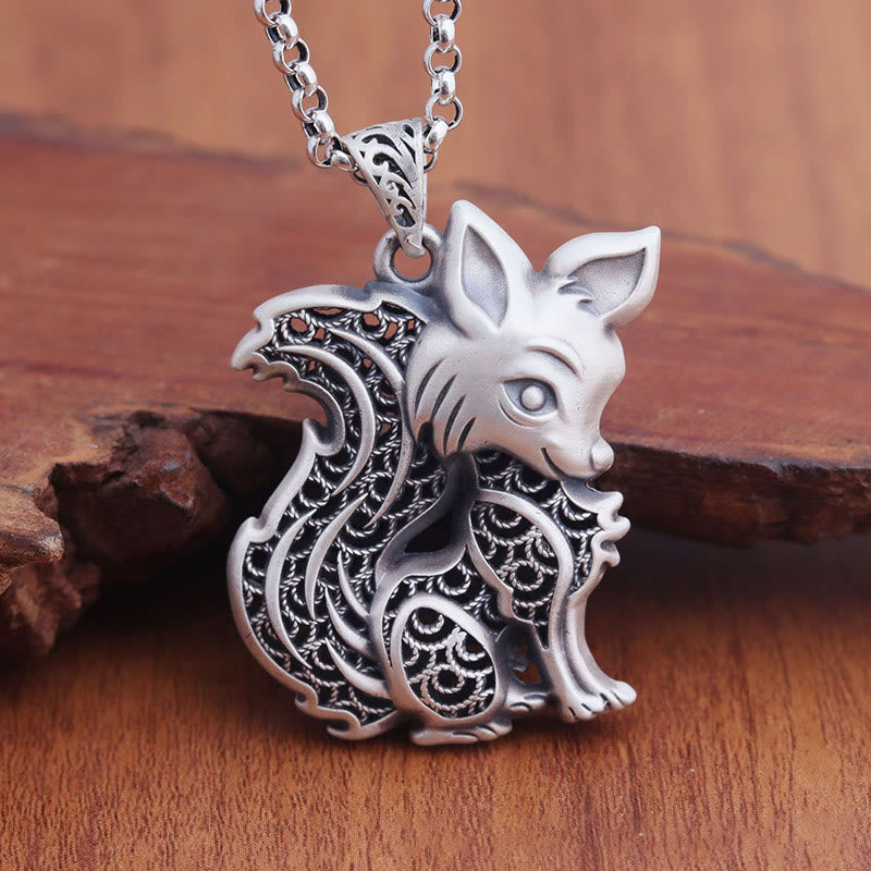 LAOTLON Tibet 999 Sterling Silver Fox Pattern Two-sided Blessing Necklace