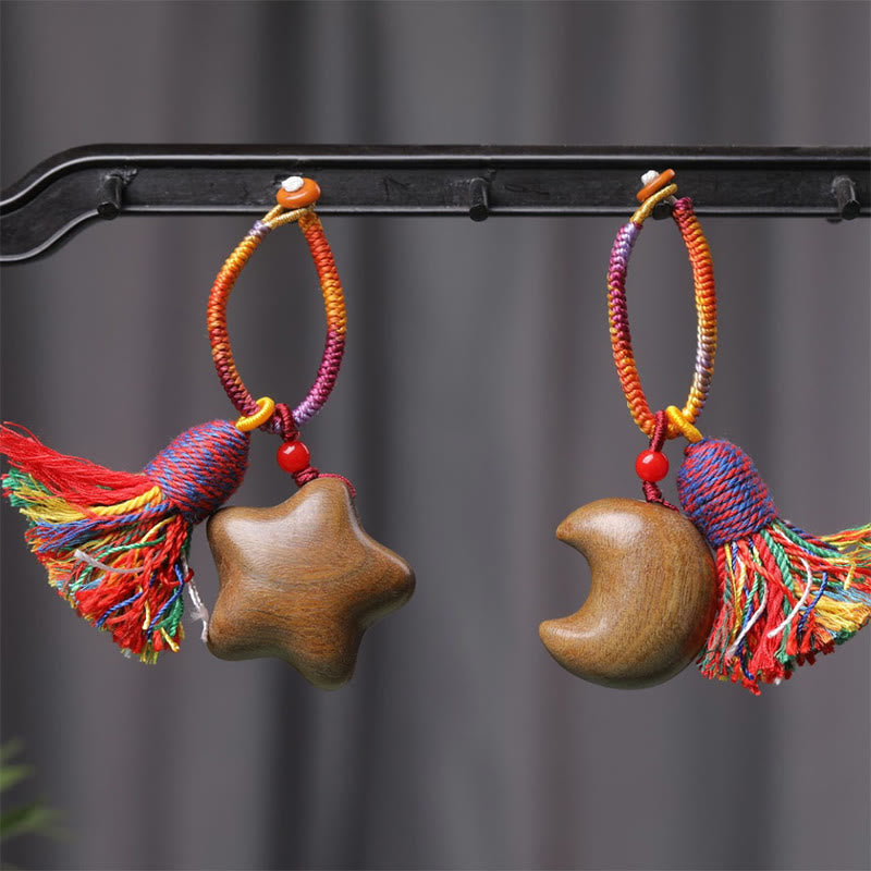 LAOTLON Tibetan Colored Rope Green Sandalwood Star Moon Peace Key Chain
