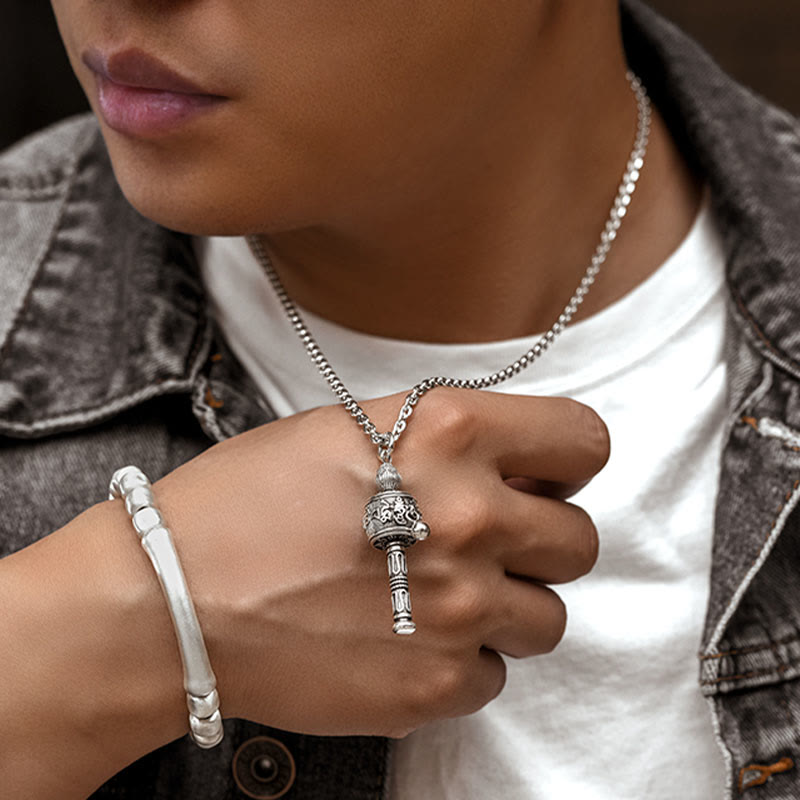 This Tibetan Om Mani Padme Hum Prayer Wheel Necklace Pendant features the six true words mantra, symbolizing love, wisdom, peace, and creativity. Made of high-quality materials and crafted by skilled artisans, it’s a meaningful and unique accessory that brings positive change.💕